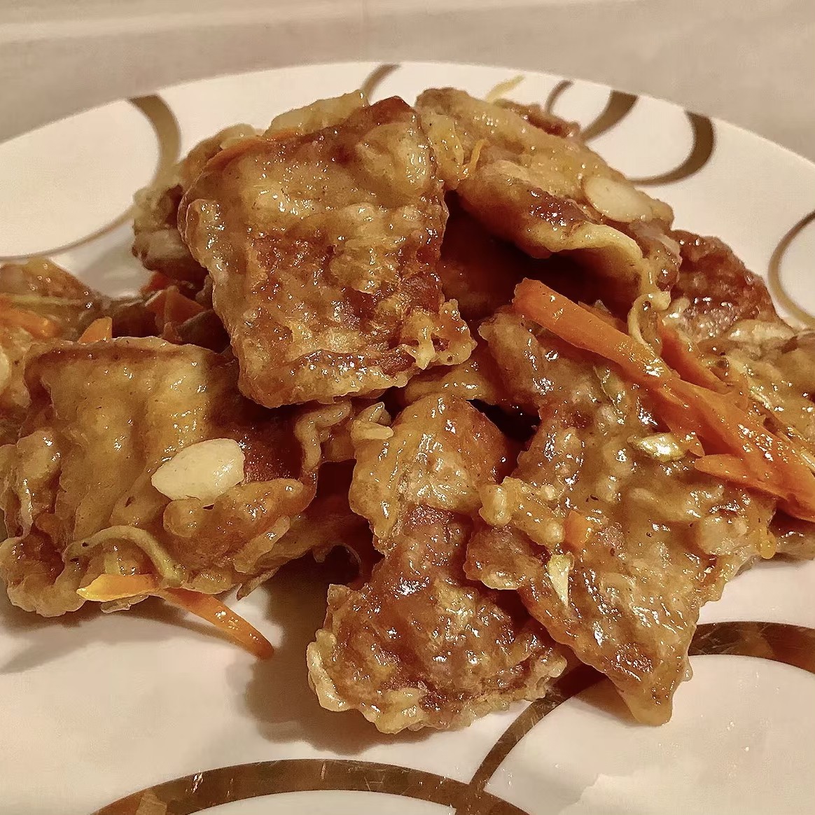 Stewed Beef Brisket with Tomato Braised pork trotters with soybeans Chicken stewed with mushrooms Enoki mushroom with garlic Noodles with Soy Bean Paste Pineapple Sweet and Sour Pork Spicy fried potato shreds Shredded Pork with Vegetables Fried Larimichthys crocea