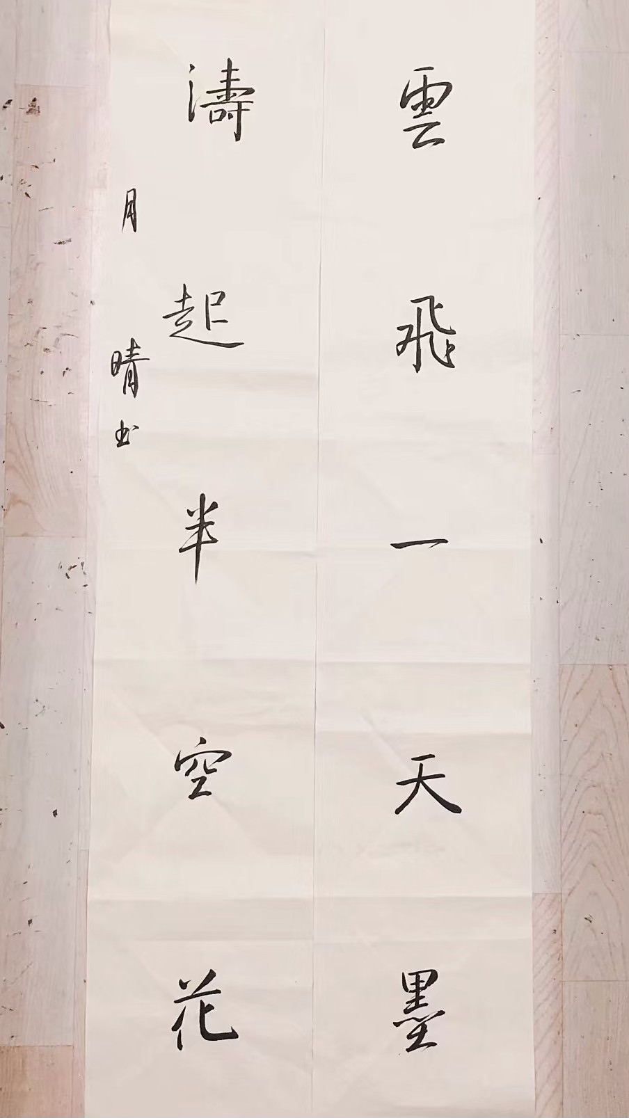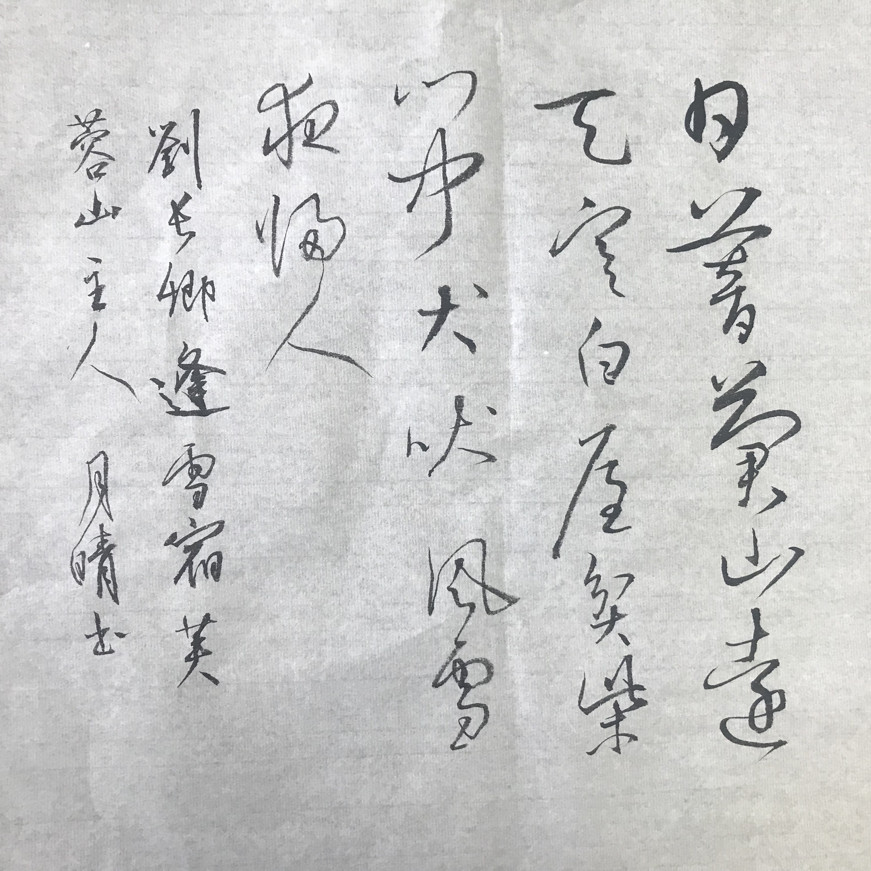 When the twilight falls on the vast mountains, I feel that the road is farther and farther, and when the weather gets colder, the thatched cottages appear more lonely. Suddenly there was a dog barking outside the Chai Gate. It turned out that someone came home braving the wind and snow.