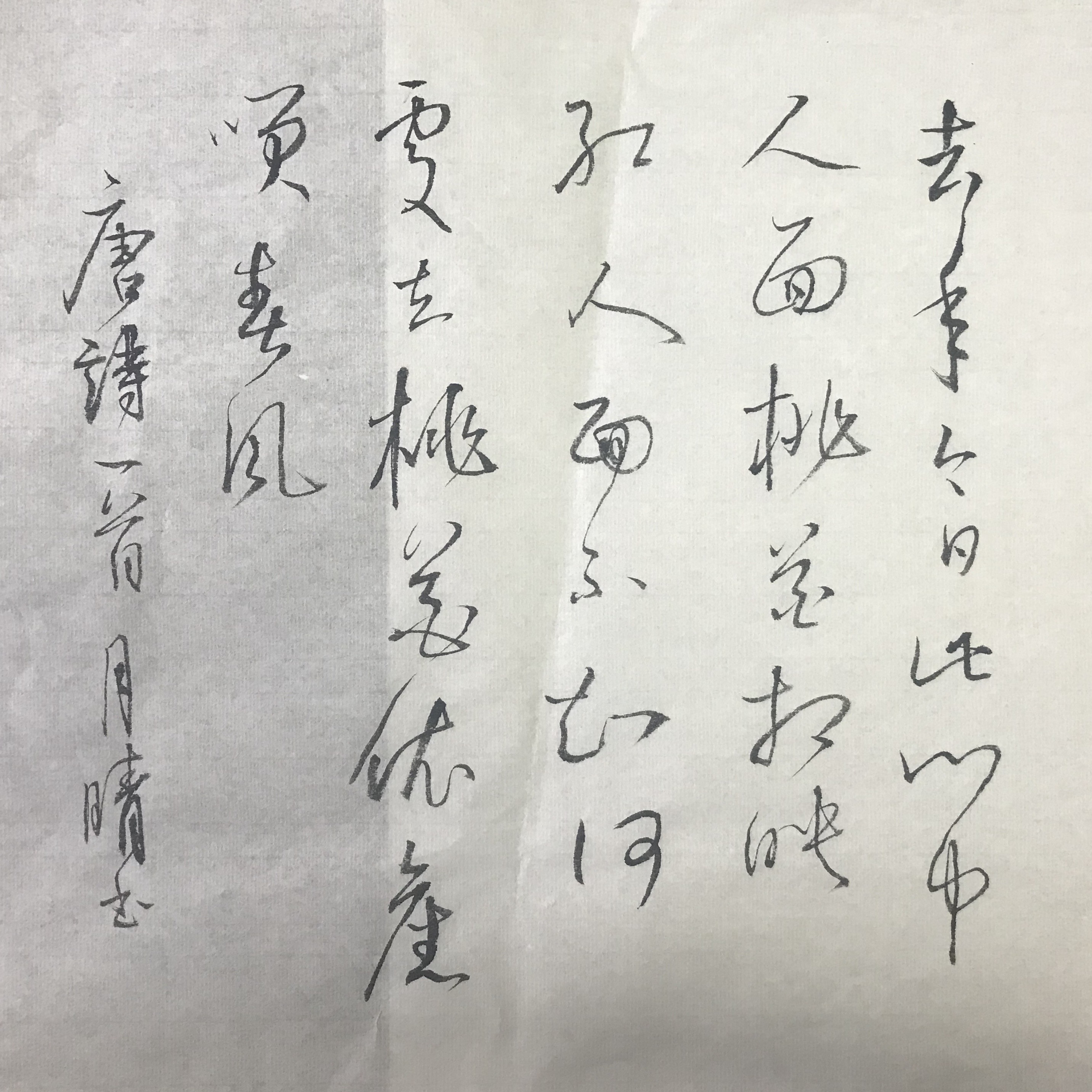Last spring, in this family's house, I saw that beautiful face and peach blossoms set off each other, and they looked very rosy. Coming here again today, the girl doesn't know where to go, only the peach blossom is still there, smiling in the spring breeze.